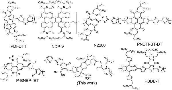 圖 用于全聚合物PSCs的有代表性聚合物受體以及聚合物受體PZ1和聚合物給體PBDB-T的分子結(jié)構(gòu)