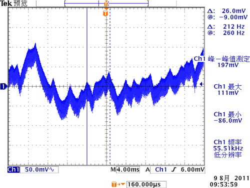低頻紋波是與輸出電路的濾波電容容量相關(guān)。由于直流電源體積的限制,電解電容的容量不可能無限制地增加,導(dǎo)致輸出低頻紋波的殘留,該輸出紋波頻率隨整流電路方式的不同而不同。