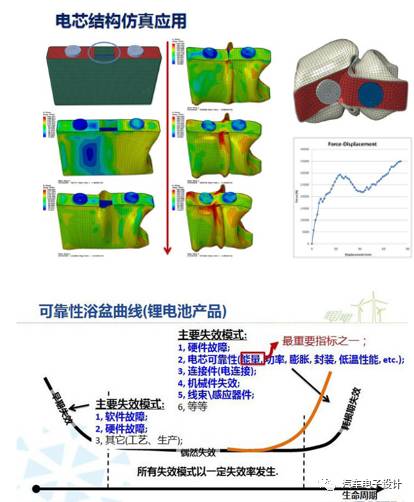 第一張圖反應的是電芯受力的情況,模擬包括振動,沖擊,擠壓等多種工況,其實模擬的就是電芯殼體和蓋板在機械應力累加時的失效情況,從而確定結構件的設計尺寸,厚度及具體焊接的強度等,
