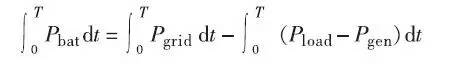 其中P grid為從電網(wǎng)取電功率,P load為建筑的用電負(fù)荷功率,P gen為光伏板等建筑內(nèi)部電源的發(fā)電功率,P load與P gen二者之差為建筑物的凈用電負(fù)荷:P= P load - P gen。P bat為正值時(shí),表示需要向蓄電池蓄電;為負(fù)值時(shí),表示需要蓄電池放電。
