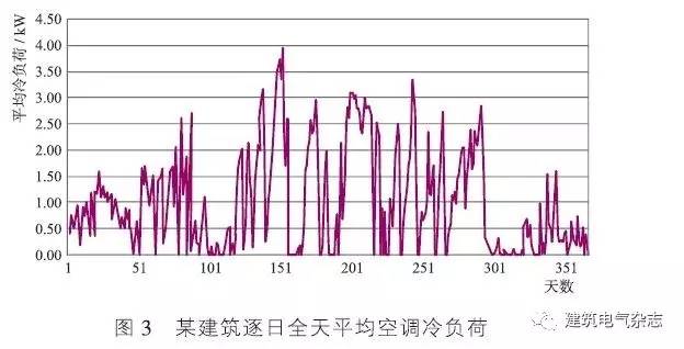 用DeST軟件進(jìn)行全年空調(diào)系統(tǒng)能耗模擬計(jì)算。模擬得到的空調(diào)冷負(fù)荷如圖3所示。其中,全天平均冷負(fù)荷最大為3. 95 kW。