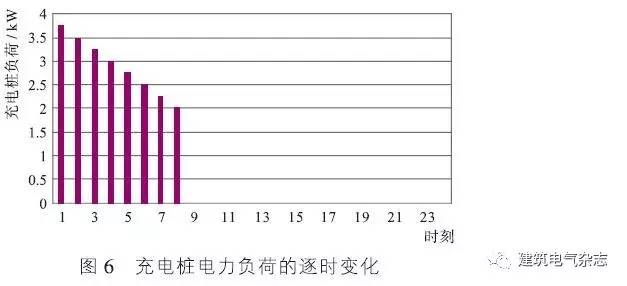 充電樁負(fù)荷以某型號(hào)電動(dòng)汽車為例進(jìn)行計(jì)算,其慢充模式下充電時(shí)間為8 h,充電量為23 kWh。根據(jù)電動(dòng)汽車的使用情況,設(shè)定充電時(shí)間為夜間0 ~ 8時(shí),電動(dòng)汽車充電速率隨蓄電池的荷電量上升而下降,故充電速率設(shè)定如圖6所示。